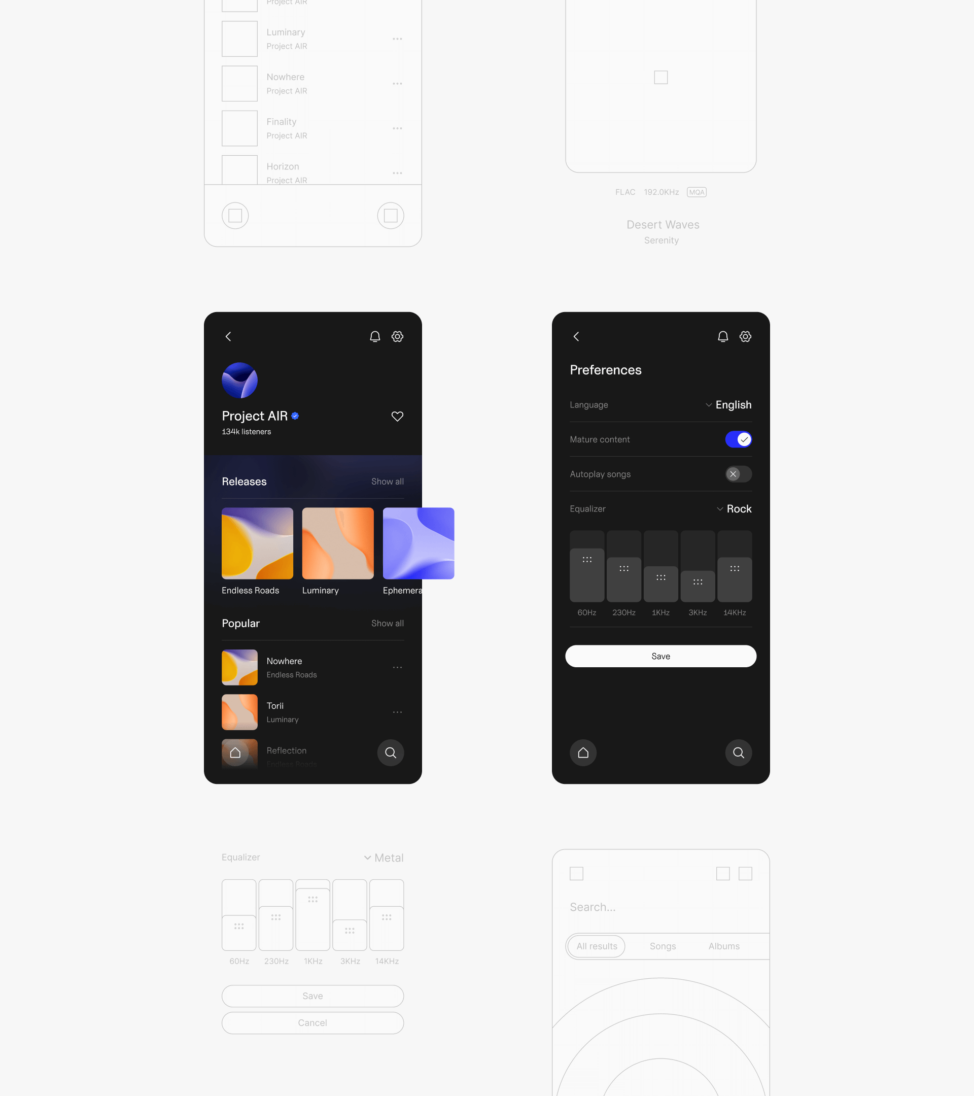 Decibel is a self-initiated music streaming app inspired by the interfaces of modern DAPs and apps like Tidal and Spotify. It aims to strike a balance between functionality and minimalist, clear design.